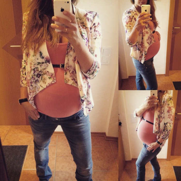 20.08.2015 20:30Neustes Outfit für meine Schwangerschaftswoche 36 - ein pinkes Spaghetti-Top wie dieses, graue Maternity Jeans Mamalicious wie diese, Gürtel wie dieser, Blazer von Bershka, Uhr Katpen&Son Campus All Black.