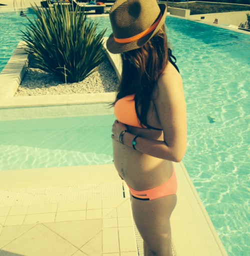 Allen voran der Schwangerschafts-Bikini. Und dazu gleich meine eindeutige Meinung - alles was ich als "Umstands- oder Schwangerschaftsbikini" im Netz und in Geschäften gefunden habe ist ja so häßlich und untragbar dass es mich teilweise richtig deprimiert hat. Warum müssen wir uns, sobald wir schwanger sind, in "Tankinis" schmeißen, die für die Figur leider überhaupt nichts tun!? Und dann sind da noch die Muster - Blümchen, Sternchen, Pünktchen... HALLO, das Baby ist IM Bauch! So, nachdem das raus ist entschuldige ich mich bei allen Marken und Designern die vielleicht wirklich schöne Teile haben, die ich leider nicht gefunden habe. :) Ich habe mich dann für einen ganz normalen Bikini entschieden, Oberteil und (vorsichtshalber) das Höschen eine Nummer größer als sonst - passt, sitzt, fertig. Durch Zufall habe ich mich genau für das Modell von CALZEDONIA entschieden, das derzeit überall auf den Plakaten prankt. Na suuper, gegen das Model DARAUF kannste ja nur verlieren.. ;)